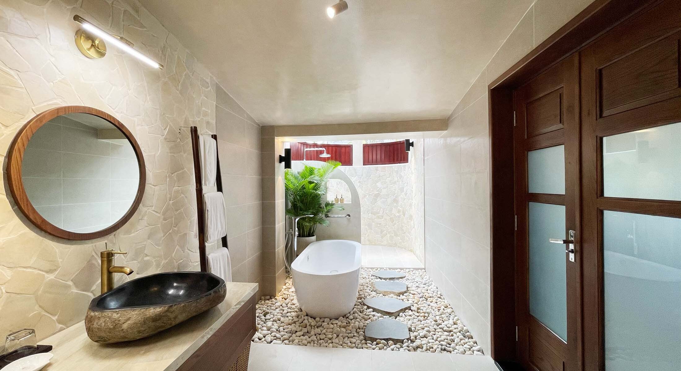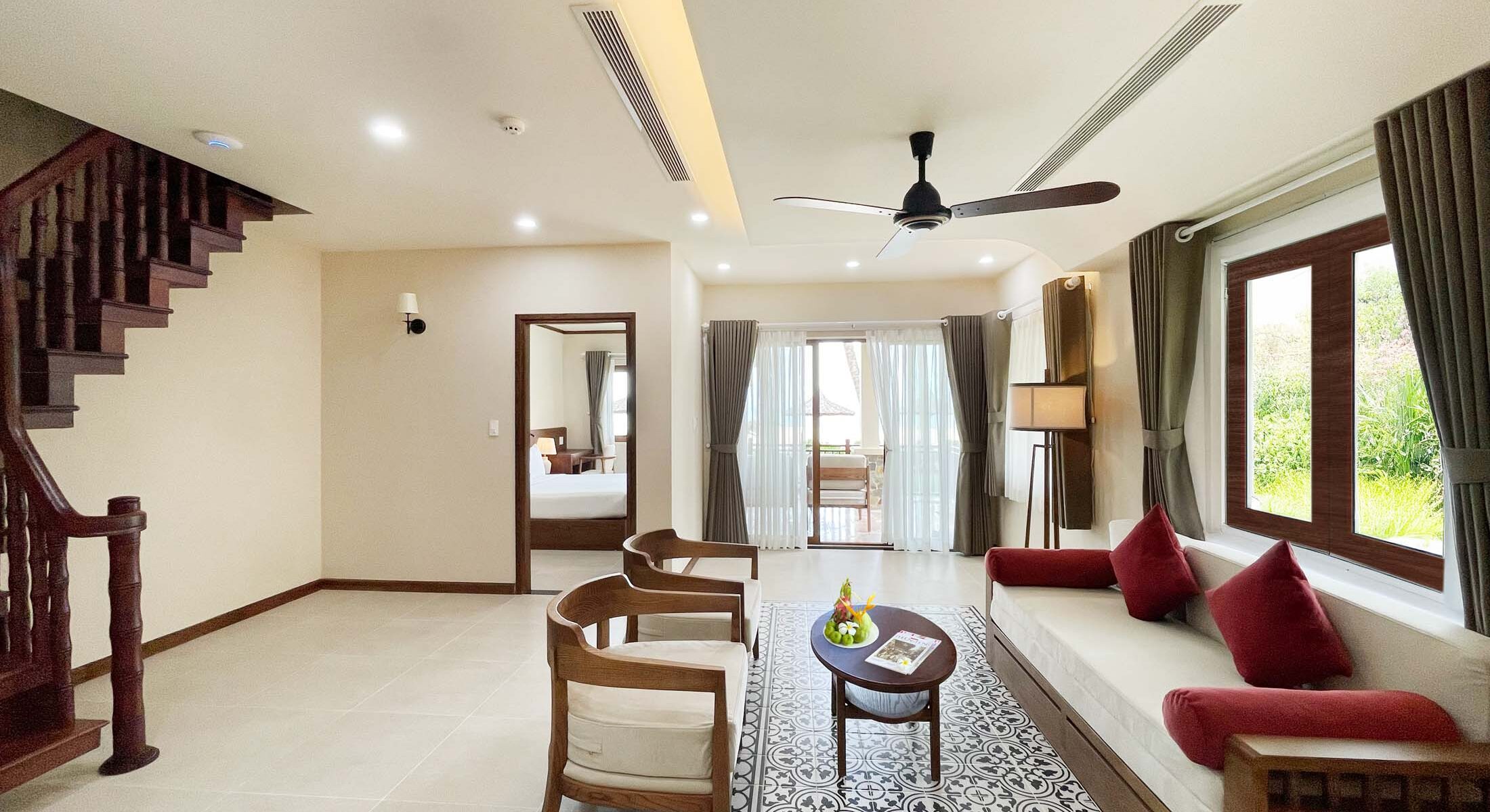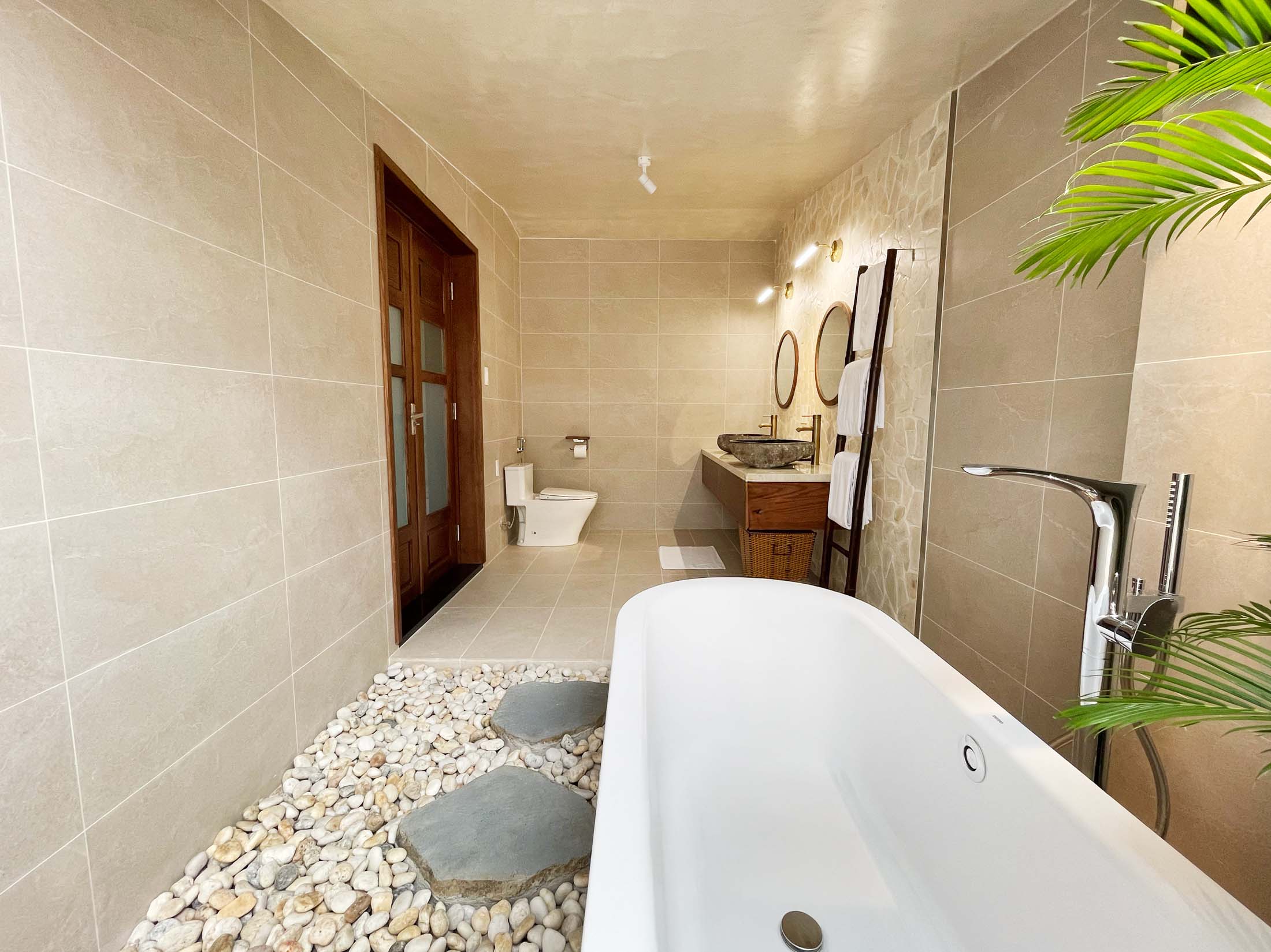 Let the gentle sunlight stream through the seaside window, filling your stay with warmth and serenity. The Presidential Beach Front Villa offers a luxurious living space with direct access to the ocean. Relax on the spacious porch, enjoy the airy living room, and indulge in the open-air bathtub and shower, where presidential elegance blends seamlessly with nature.