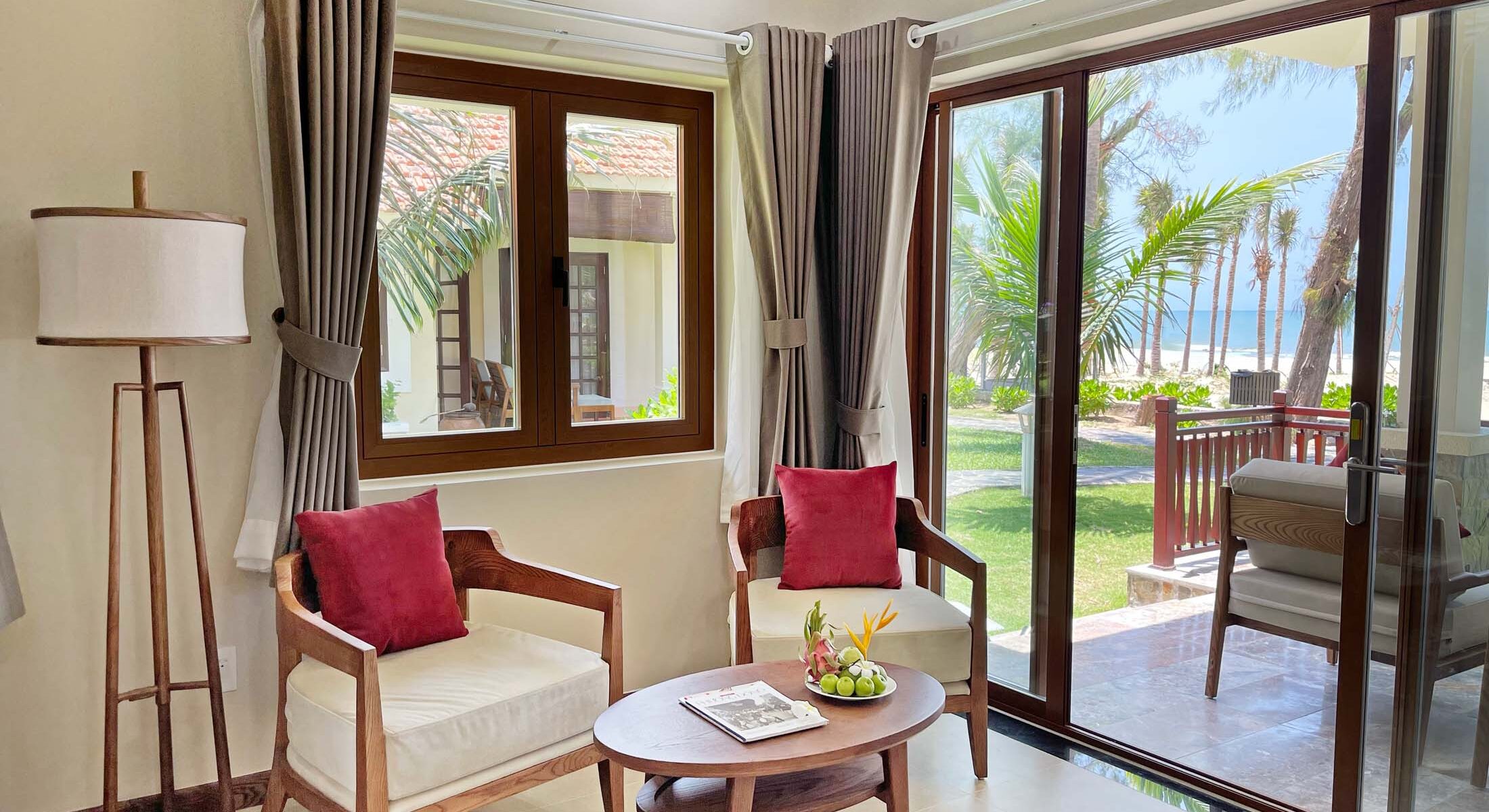 Chỉ cần bước ra khỏi cửa, bạn sẽ chạm đến bãi cát vàng óng ánh, nơi làn gió biển dịu dàng chào đón mỗi buổi sáng. Villa được thiết kế tinh tế, mang đậm nét duyên dáng và sự thoải mái sang trọng, với không gian rộng rãi và riêng tư cho bạn cùng người thân. Hãy tận hưởng nhịp sóng biển êm đềm vào ban ngày, hoặc ngắm trăng rằm lên cao dưới mái hiên vào buổi tối. Từng chi tiết, từ thiết kế thanh lịch đến sự chăm chút nhỏ nhất, đều mang đến kỳ nghỉ yên bình và khó quên.